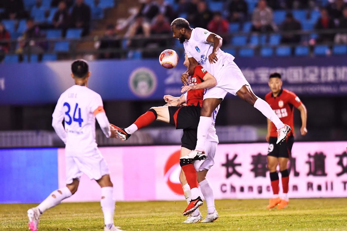 第 42 分鐘,卡隆低射被王智峯撲出,江子磊在禁區內凌空補射破門,1:2,支雲隊於客場實現反超比分。