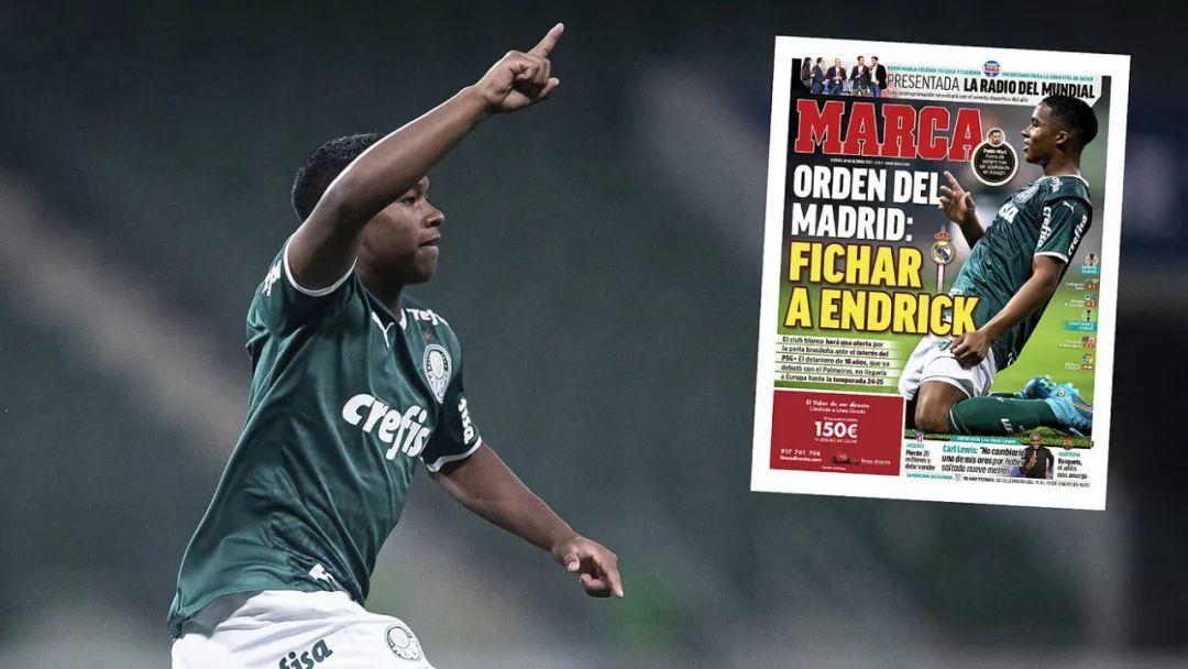 7月年滿16歲後,帕爾梅拉斯才與恩德里克簽署職業合同,允許他參加職業賽事。射入巴甲處子球后,恩德里克模仿了哈蘭德的慶祝動作,歐洲豪門自然從他身上看到了另一個超級前鋒的潛力。切爾西、利物浦、曼聯和曼城都對恩德里克有意,但皇馬絕不讓當年錯失內馬爾的歷史重演。