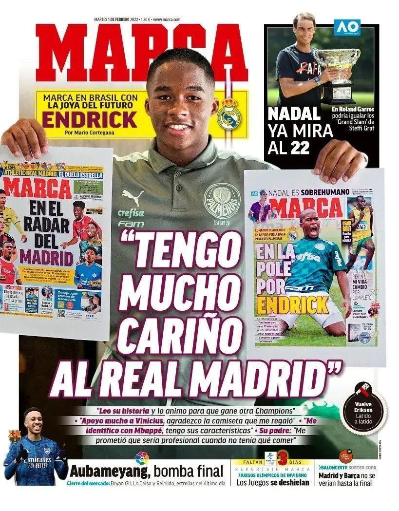 因從預籤維尼修斯、羅德里戈和米利唐身上嚐到甜頭,皇馬早已將巴西作爲未來銀河艦隊的人才富礦。恩德里克的父母已與皇馬的代表見過面。恩德里克必須年滿18歲才能轉會歐洲,這位如今在巴西人氣比當年同齡的內馬爾還火爆的神童,被銀河艦隊提前兩年預訂幾乎沒有懸念。恩德里克的偶像是C羅,父親爲他設計了C羅、內馬爾和梅西3種不同類型的發展方向,恩德里克自己選擇了C羅。或許再過兩年,恩德里克就將循着偶像C羅的足跡,踏上伯納烏的草坪。