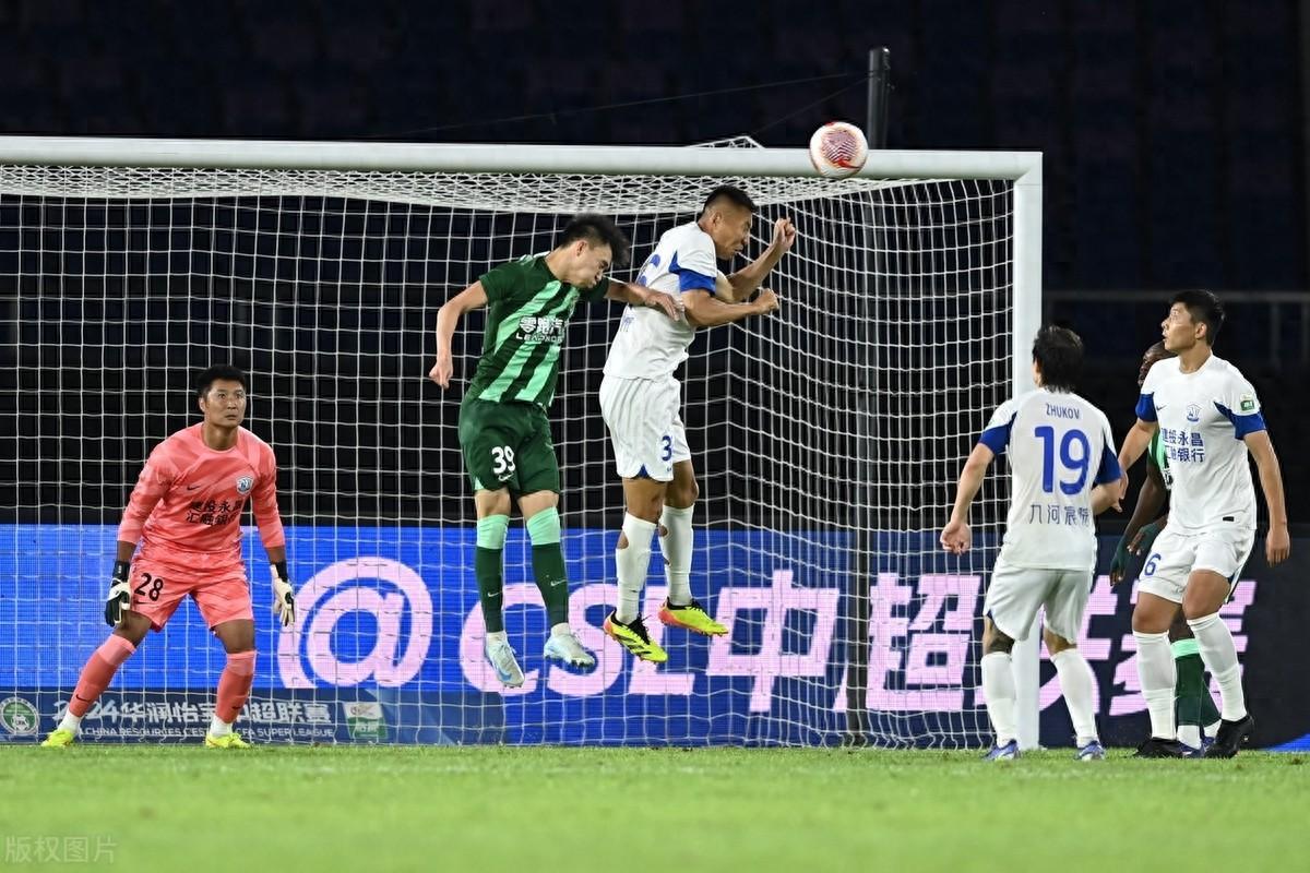 第 67 分鐘,萊昂納多施射,孫銘謙於門前解圍時不慎自擺烏龍,浙江隊扳回一城。