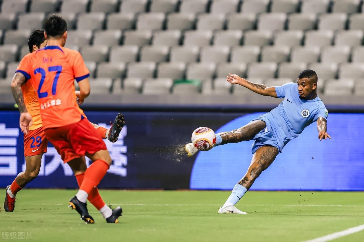 第 92 分鐘,鎖定勝局!德爾加多穿襠捅射破門,山東泰山 3 - 1 深圳新鵬城。