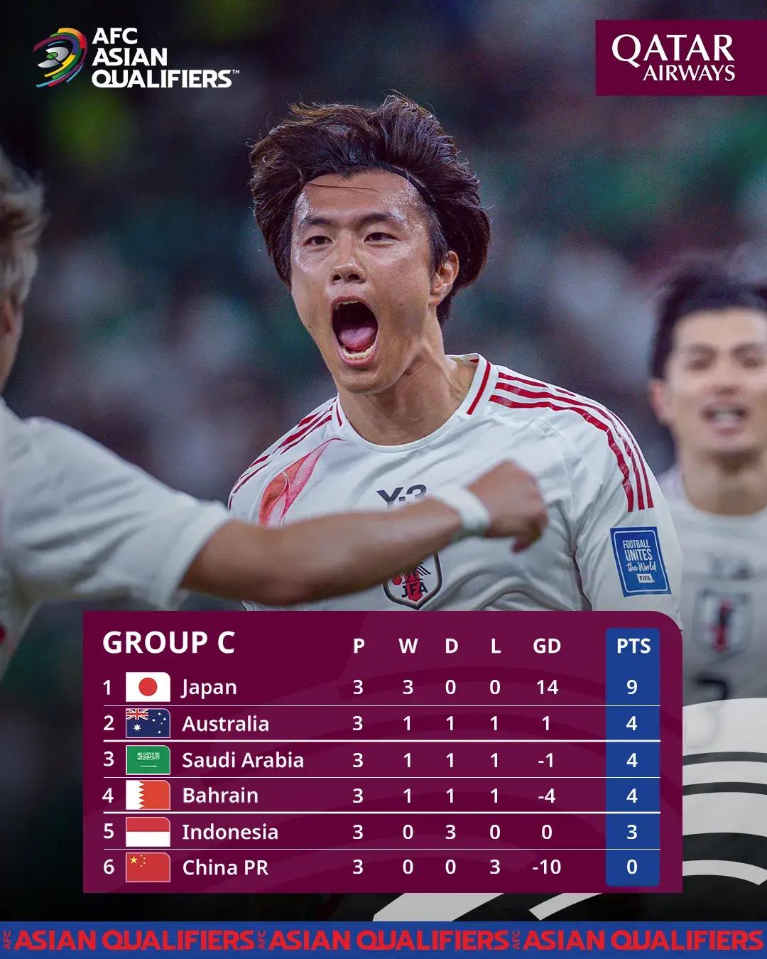 值得一提的是,這一輪日本隊主場打澳大利亞隊,日本隊18強賽三連勝,打進14球0失球,主場極大可能戰勝澳大利亞。一旦日本成功戰勝澳大利亞,C組日本隊一枝獨秀,其他五隊纏鬥的格局將非常清晰。如此一來,國足完全可以亂中求生機。