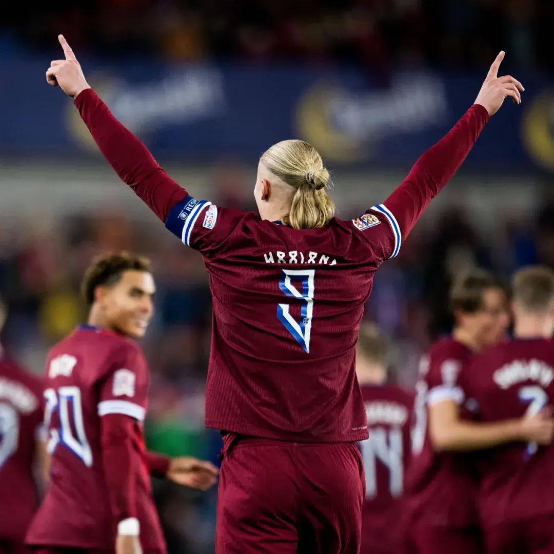 但2024/25賽季歐國聯B級小組賽,前三輪挪威隊2勝1平積7分,領先奧地利和斯洛文尼亞3分,很有希望升上A級。對奧地利和斯洛文尼亞兩大競爭對手,哈蘭德合計攻入3球,帶隊取得連勝居功至偉。在中場核心厄德高缺席的情況下,很有希望帶領歐洲三流的挪威隊殺入歐國聯A級賽事。明年開始的2026年世界盃歐洲區預選賽,哈蘭德也是信心滿滿,希望能在2000年後,時隔26年再次讓挪威隊出現在大賽舞臺。這對於哈蘭德而言,是責無旁貸的使命。