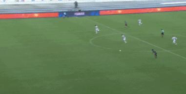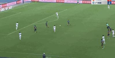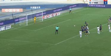 上半場補時第4分鐘,葉楚貴一記搓射直掛左上角,劉潤楠沒能做出任何撲救反應,廣州城半場1-0領先。