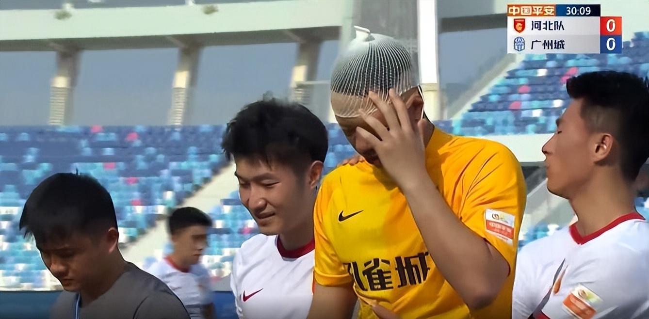 第27分鐘,鮑亞雄出擊跟桂宏撞在了一起,頭部出現了受傷的情況。4分鐘後,鮑亞雄不得不因傷退下火線,河北隊只能派上U21後衛劉潤楠客串門將。