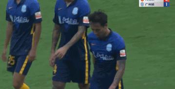 劉潤楠客串門將後,河北隊在補時階段城池失守,不過葉楚貴搓射破門後,沒有太多慶祝,廣州城主帥李瑋鋒同樣也不忍心慶祝。