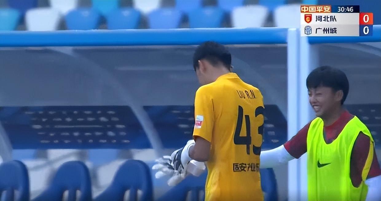 中超第20輪,河北隊對陣廣州城。上半場,河北隊唯一的門將鮑亞雄受傷離場,廣州城打進首開紀錄進球后,都不忍心慶祝了。