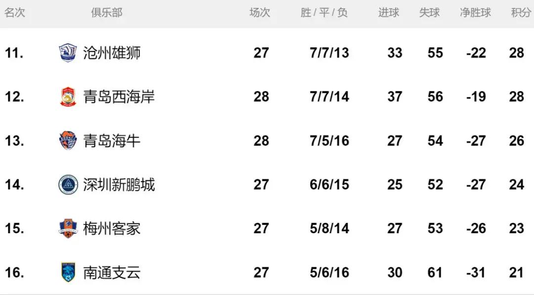 青島海牛輸給北京國安,正常來講是在意料之中的事情,但青島海牛的問題是他們目前積分只有26分,在積分榜上的位置比較微妙,他們至少需要拿到3分纔有更大的保級希望。青島海牛最後兩輪的對手是客場對陣天津津門虎,主場對陣滄州雄獅,其中下一輪比賽青島海牛要爭取拿分。