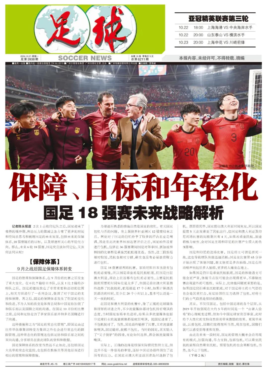 國足保障體系的改變當然遠不止如此,還包括國足大名單的常態化監控,也包括在教練員等其他層面進行相應的管理和保障措施。