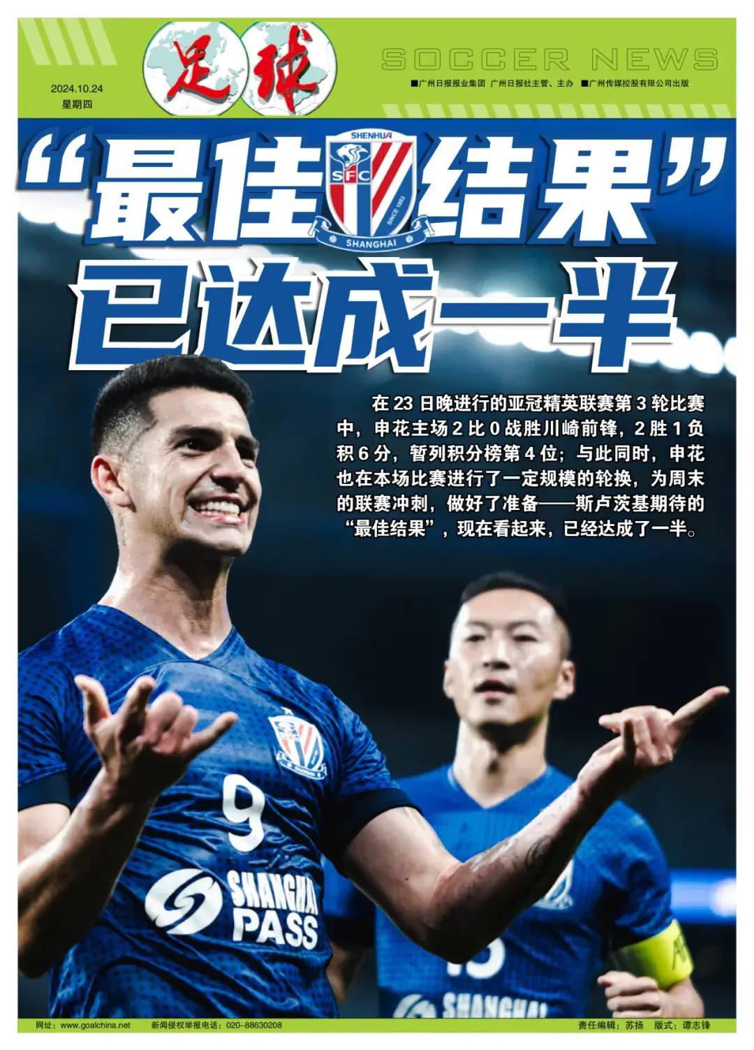 特約記者甘慧報道 斯盧茨基期待的“最佳結果”,現在看起來,已經達成了一半。在23日晚進行的亞冠精英聯賽第3輪比賽中,申花主場2比0戰勝川崎前鋒,2勝1負積6分,暫列積分榜第4位。