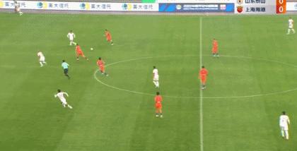 第60分鐘,莫伊塞斯中路分到右側,費萊尼打門被顏駿凌撲出,吳興涵小角度補射破門,山東泰山1-0領先上海海港。