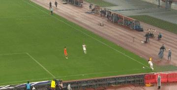 第22分鐘,郭田雨背身回做,陳蒲左腳兜射偏出球門左側。