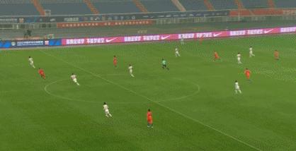 第40分鐘,保利尼奧挑傳,武磊1V2突入禁區後外腳背打門被王大雷擋出。