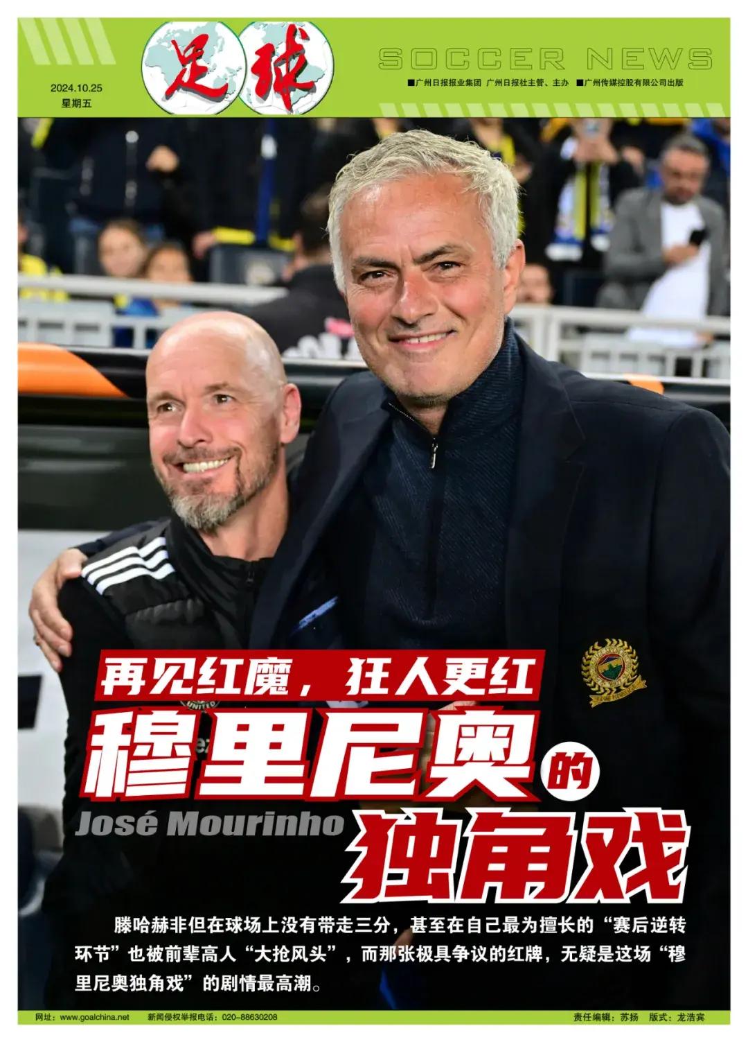 即便英國媒體習慣將鏡頭對準隨時可能下課的滕哈赫,穆里尼奧還是能輕鬆“搶戲”。賽前發佈會、比賽和賽後發佈會,彷彿穆里尼奧的“狂人三幕劇”。滕哈赫或許要感謝穆帥的“解圍”,曼聯最近11場歐戰僅勝1場,最近4場歐戰第6次領先卻無法取勝的尷尬,被穆里尼奧嘲諷主裁的熱度掩蓋。紅魔前主帥場上沒輸,場下更是贏得徹底。