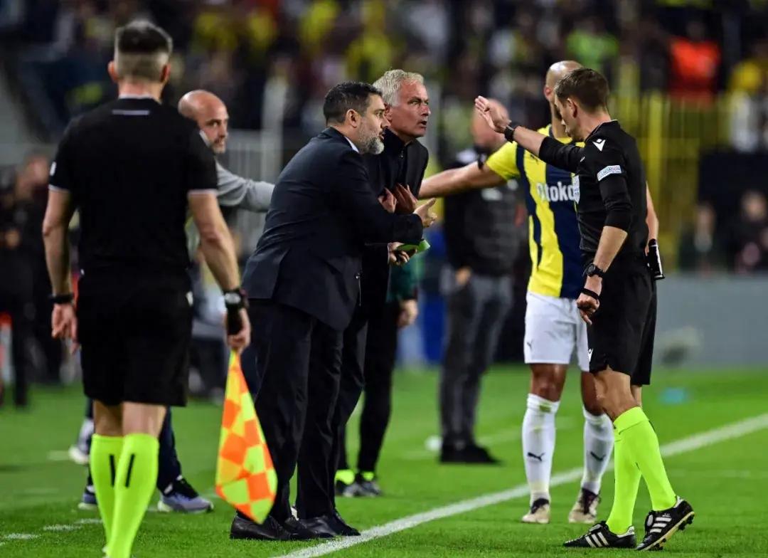 但下半場開場4分鐘,恩內斯里就再次用頭球化解了上半場兩連擊無果的鬱悶,來自聖馬克西曼的助攻讓雙方回到了同一起跑線。第58分鐘,比賽被推至高潮,費內巴切右後衛薩穆爾禁區內倒地,但因爲法國裁判蒂爾潘未予表示,穆里尼奧揮舞雙臂抗議染紅,反倒成爲賽後最受關注的話題——被罰下的狂人依然是主角:恢復冷靜的他坐在看臺上沉思、喃喃自語、不斷在紙上寫下戰術指令,再由助教傳遞到替補席上。