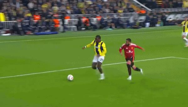 球場之上,曼聯一如既往無法保住領先優勢。開場15分鐘加納喬左路突入禁區橫傳,齊爾克澤傳給埃裏克森,後者在禁區弧頂率先得分,這也是他們本屆歐聯第三次率先破門。但主場作戰的費內巴切讓人見識了預想之外的“穆里尼奧球隊”,進攻積極主動的他們無論控球率或是得分機會,都佔據了上風,上半場雙方射門比是7比2,射正更是4比1;反倒是標榜攻勢足球信徒的滕哈赫,選擇了低位防守擇機反擊,但在取得領先之後,他們的防線也頻頻告急,如果不是奧納納10秒內的神奇兩連撲,或許曼聯的領先優勢都沒法帶入更衣室。
