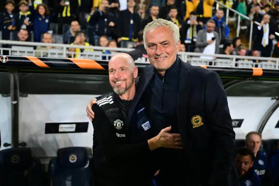 兩位教練也必然被媒體拉出來對比:滕哈赫執教曼聯126場勝率57%,拿到兩個冠軍;穆里尼奧執教144場勝率58%,拿到歐聯杯在內的3個獎盃。穆里尼奧時代曼聯場均失球數(0.9球)遠少於滕哈赫(1.4球),球市上滕哈赫燒了6.6億歐元,穆里尼奧只花了4.66億。