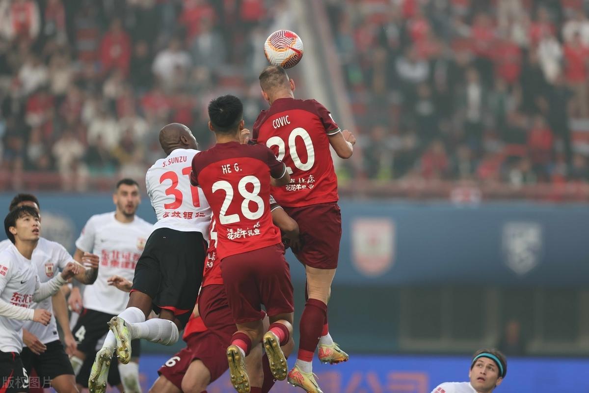 第70分鐘,河南隊發動攻勢,科維奇頭球攻門高出橫樑。