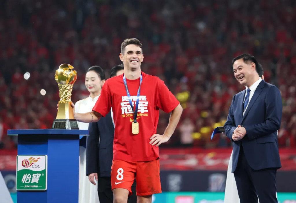 2024年,33歲的奧卡斯在中超賽場仍舊是勞模般的存在。本賽季僅中超賽場就上場29次,拿到14個進球、20次助攻(中超官方數據),刷新了自己在2018年創造的單季18次助攻紀錄。本賽季結束,奧斯卡合同即將到期,早已融入這個城市的他,在年初就給自己設定“再幫海港拿一個冠軍”的目標,如今也實現了。“我還想再在海港打一年。”就在外界猜測奧斯卡去留問題時,奪冠之夜,他拋下了這樣一句話。