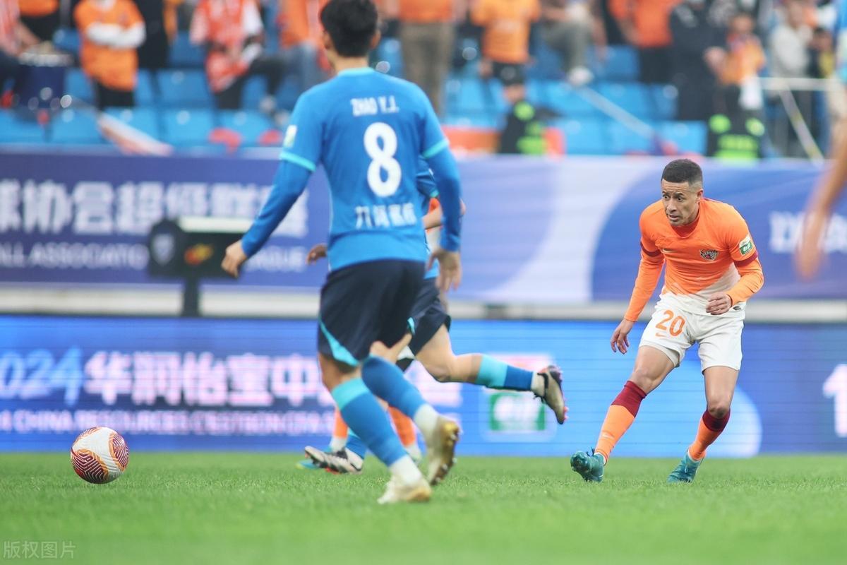 比賽第22分鐘,王建明右路送出傳中,迭戈甩頭攻門未能發上力量。