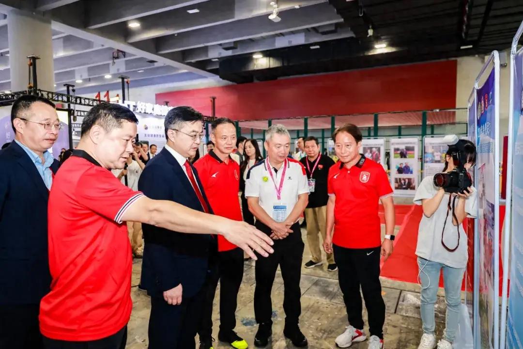 廣東省足球協會亮相本屆廣東體博會,在廣東省足協展區,廣東足球大事記、志行風格展板記錄了廣東足球在發展中的印記,廣東旅控、足球報、佛山西甲等足球品牌也亮點紛呈。16日中午,廣東省體育局局長崔劍、廣東省體育局副廳級幹部雷檢軍、廣東省足協主席謝昌晶等領導來到廣東省足協展區,觀看2024廣東足球大事記、省港杯歷史回顧、弘揚志行風格展板等,並與參展的足球品牌機構進行交流。