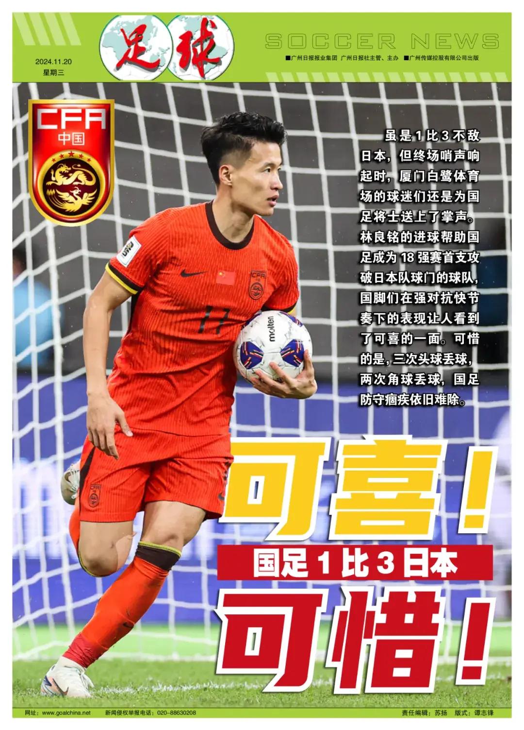 記者陳永廈門報道 雖是1比3不敵日本,但終場哨聲響起時,廈門白鷺體育場的球迷們還是爲國足將士送上了掌聲。林良銘的進球幫助國足成爲18強賽首支攻破日本隊球門的球隊,國腳們在強對抗快節奏下的表現讓人看到了可喜的一面。