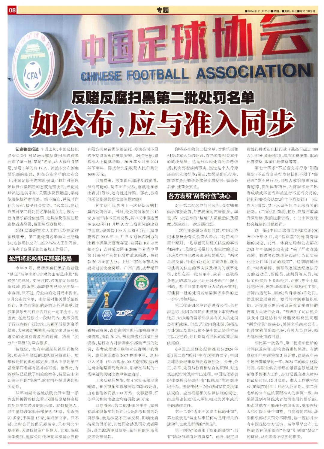 2025賽季聯賽准入工作已經在緊鑼密鼓展開,第二批處罰名單如果已經確認,應該儘快公佈,至少與准入工作同步,纔有利於各俱樂部的備戰工作展開。
