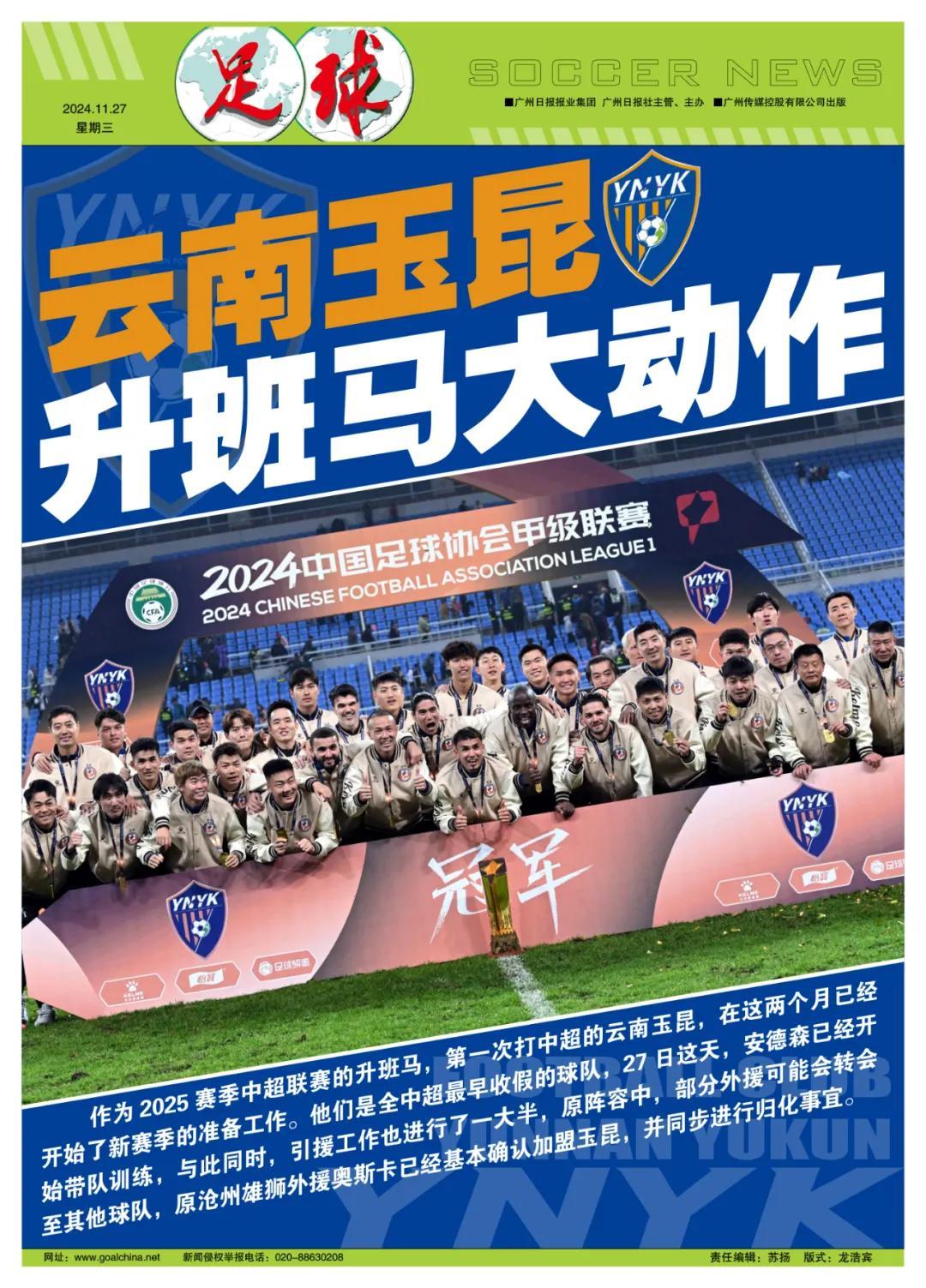 記者魯蜜報道 作爲2025賽季中超聯賽的升班馬,第一次打中超的雲南玉昆,在這兩個月已經開始了新賽季的準備工作。他們是全中超除最早收假的球隊(亞冠四隊仍未放假),27日這天,安德森已經開始帶隊訓練,與此同時,引援工作也進行了一大半,原陣容中,部分外援可能會轉會至其他球隊,原滄州雄獅外援奧斯卡已經基本確認加盟玉昆,並同步進行歸化事宜。