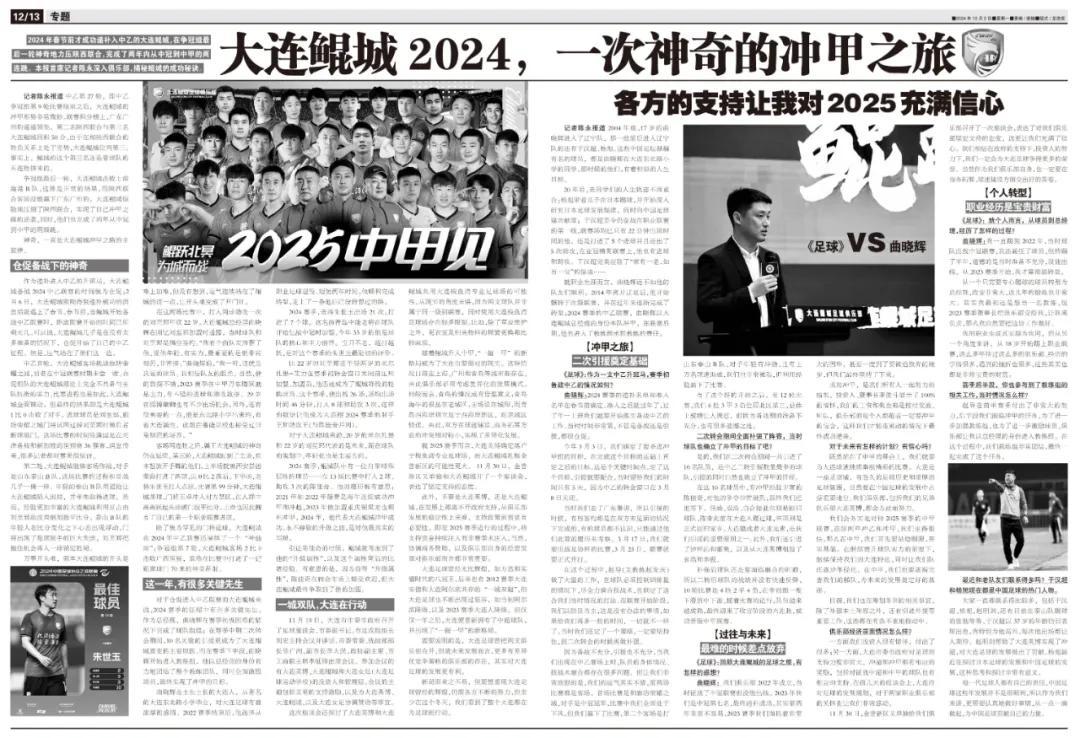 我們會務實地對待2025賽季的中甲聯賽,連續兩年衝乙和衝甲,我們走得很快,那麼在中甲,我們首先要站穩腳跟,夯實基礎。在繼續提升球隊實力的前提下,繼續保持我們的大連特色,同時讓我們隊伍逐步年輕化。在中甲,我們也要逐漸完善我們的梯隊,爲未來的發展奠定好的基礎。