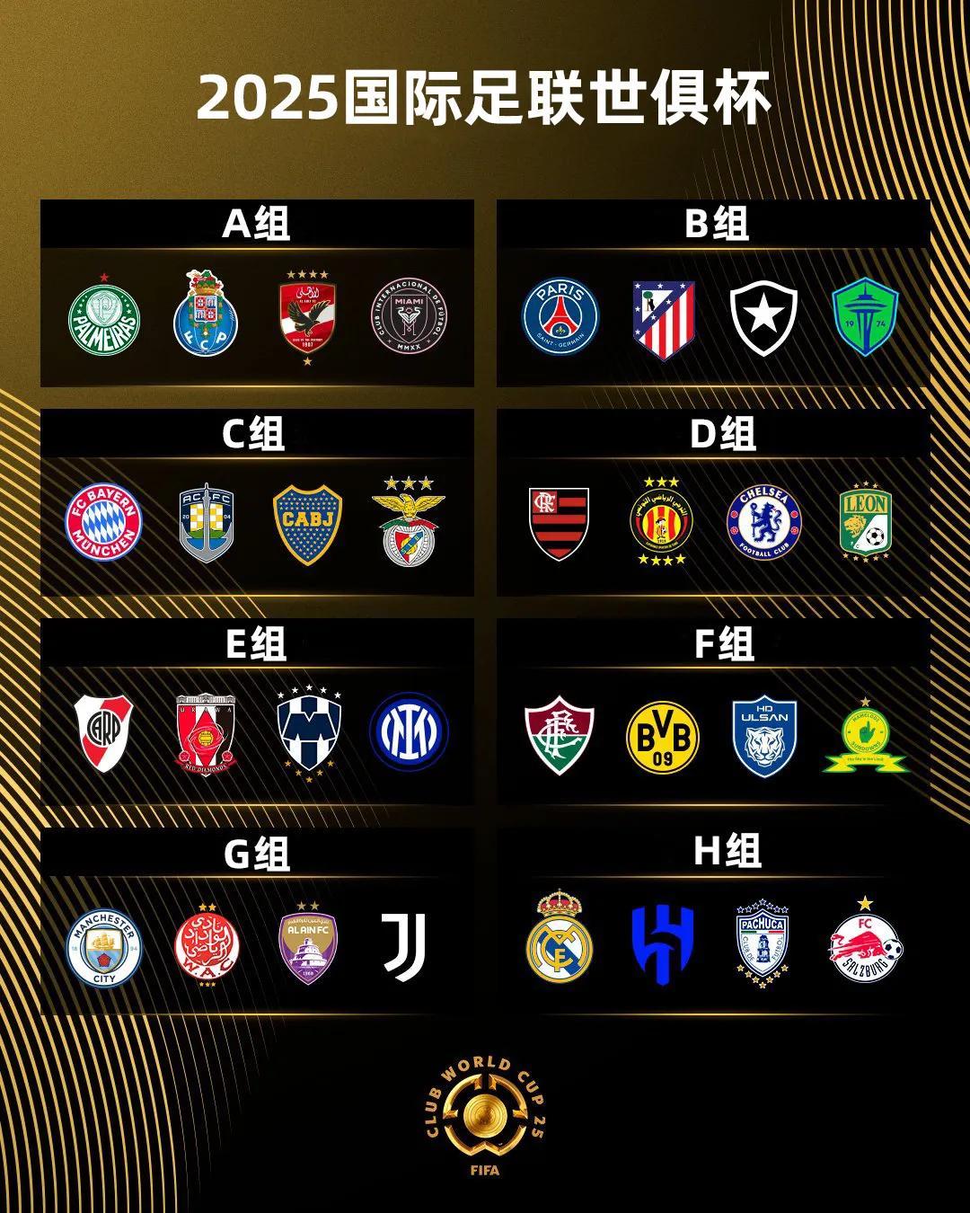歐洲人氣豪門只有B組的大巴黎與馬競,G組的曼城與尤文圖斯同組,此外只有C組的拜仁vs博卡青年,D組的切爾西vs弗拉門戈,E組的河牀vs國米,H組皇馬與利雅得新月的“姆內”聚首,或許還能讓北美體育場多些引流噱頭。F組多特蒙德籤運最佳,但這同樣意味着該組很難聚齊人氣。