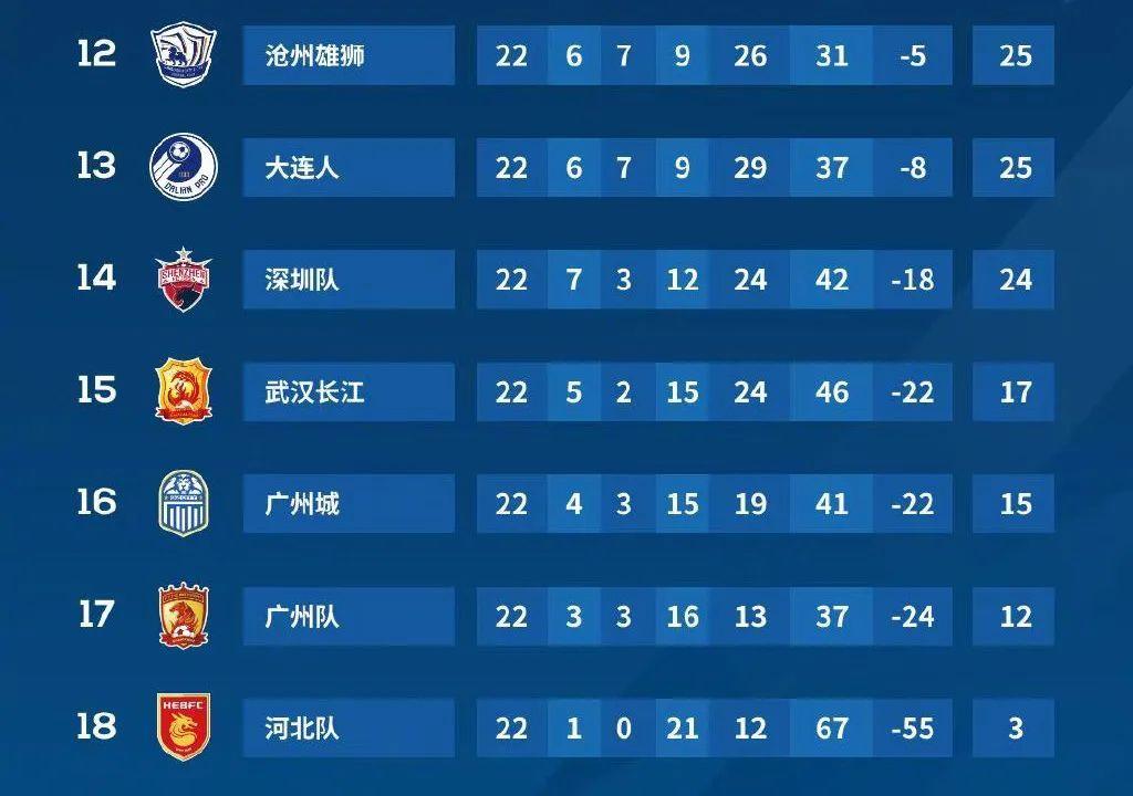 再來看武漢長江的保級形勢:目前武漢長江積17分,而在排名在他之前的球隊中,積分最少的是深圳隊,但積分也達到了24分,領先武漢長江7分,就總體實力而言,深圳隊是優於武漢長江的。再之前的球隊,此前在降級區邊緣的滄州雄獅表現非常強勢,目前積分達到了25分,同時大連人也有25分,他們領先武漢長江都已經達到了8分。