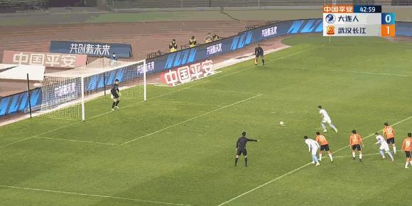 本場比賽,武漢長江展現了不同於此前7場比賽的鬥志,而且他們還由胡靖航頭球率先取得了進球。但半場結束前,大連人便由林良銘主罰點球扳平了比分。
