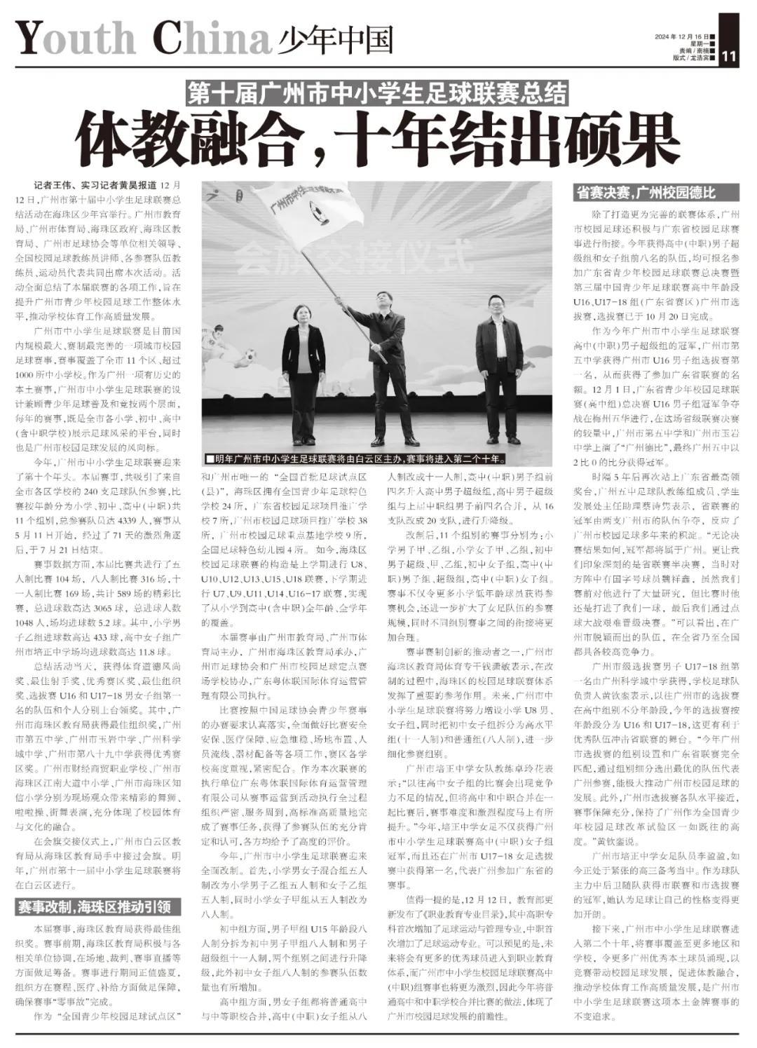 除了打造更爲完善的聯賽體系,廣州市校園足球還積極與廣東省校園足球賽事進行銜接。今年獲得高中(中職)男子超級組和女子組前八名的隊伍,均可報名參加廣東省青少年校園足球聯賽總決賽暨第三屆中國青少年足球聯賽高中年齡段U16、U17-18組(廣東省賽區)廣州市選拔賽,選拔賽已於10月20日完成。