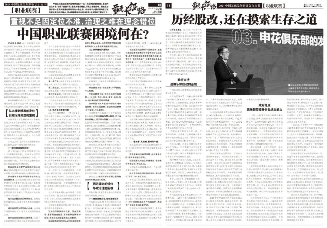 我們決定用白皮書的方式來記錄這次會議的用心還在於,這是資深足球人宋凱第一次全面系統闡述他的足球理念,也是足球重點城市和職業聯賽首度謀求深度融合。