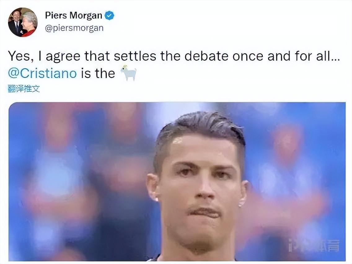 比賽結束後,英國主持人摩根也更新了推特,他說到:是的,我承認梅羅之爭結束了,C羅就是GOAT。