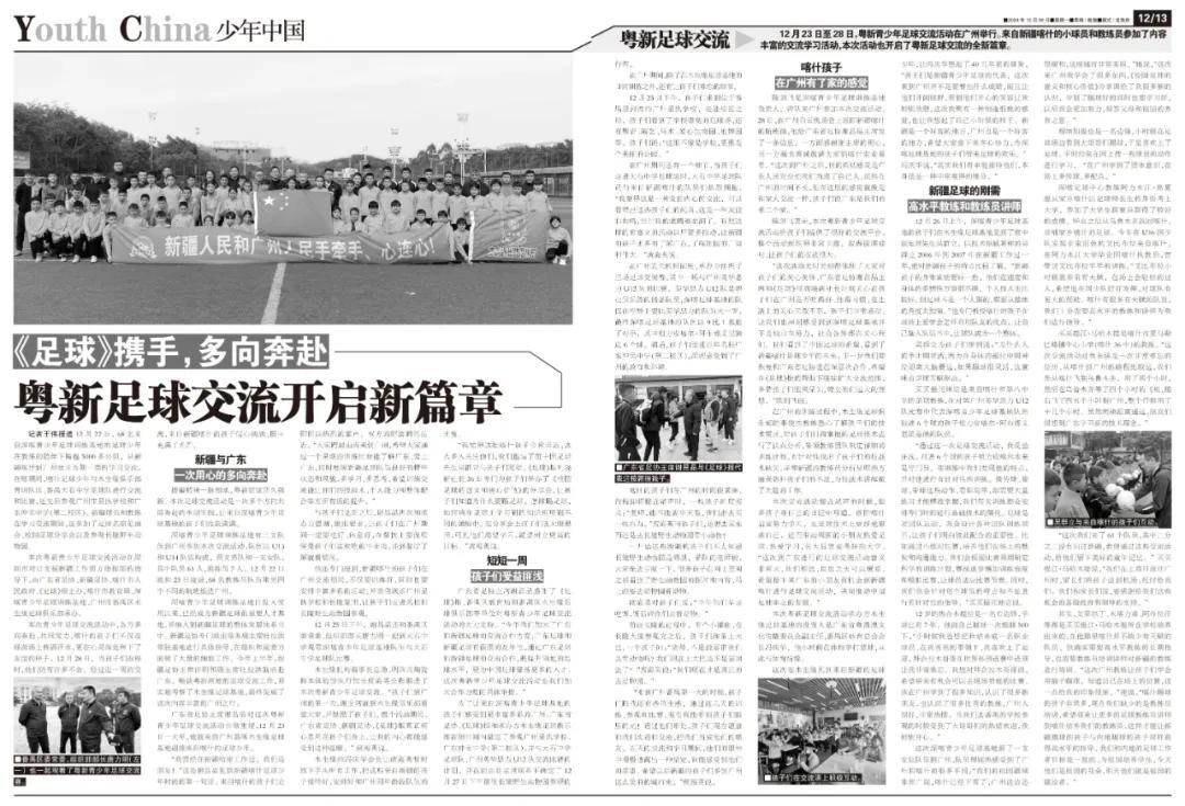 “這次活動無時無刻都體現了大家對孩子們的關心關懷,廣東省足協謝昌晶主席和《足球》報劉曉新社長時刻關心着孩子們在廣州是否喫得好、住得習慣,在生活上的關心無微不至,孩子們非常感動。讓我們也深刻感受到到深喀足球基地並不是獨自在努力,社會各界都在關心我們。我們看到了中國足球的希望,看到了新疆喀什足球少年的未來。下一步我們要積極和廣東省足協進在深層次合作,希望在《足球》報的幫助下繼續擴大交流範圍,多帶孩子們出來見識,樹立他們遠大的理想。”陳劍飛說。