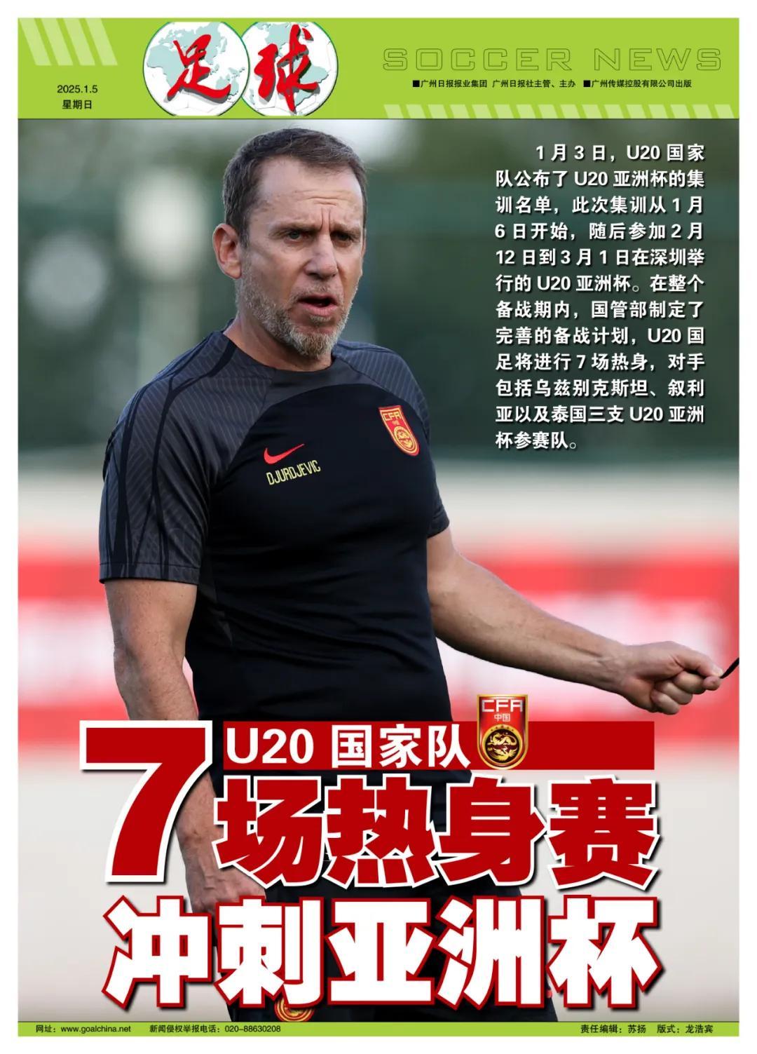 記者陳永、寒冰報道 1月3日,U20國家隊公佈了U20亞洲盃的集訓名單,此次集訓從1月6日開始,隨後參加2月12日到3月1日在深圳舉行的U20亞洲盃。在整個備戰期內,國管部制定了完善的備戰計劃,U20國足將進行7場熱身,對手包括烏茲別克斯坦、敘利亞以及泰國三支U20亞洲盃參賽隊。