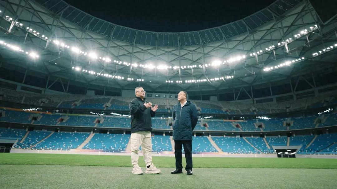 採訪的最後,劉宏饒有興致地拉着記者的手,從包廂裏一直走到球場上,就像在向客人介紹自己家極富設計感的客廳,難怪人們說,一座熱火朝天的球場,就是一個城市的會客廳。