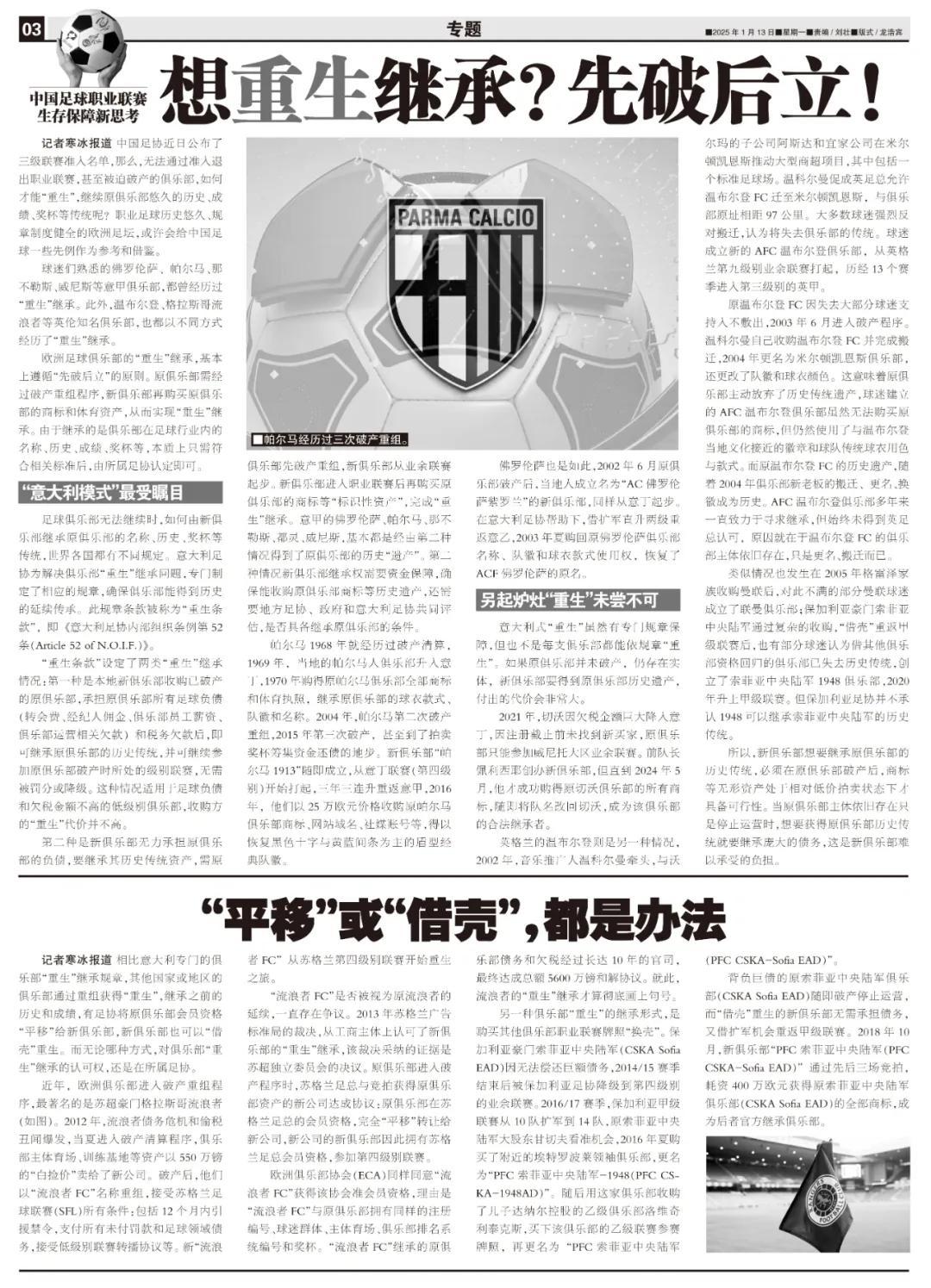 相比意大利專門的俱樂部“重生”繼承規章,其他國家或地區的俱樂部通過重組獲得“重生”,繼承之前的歷史和成績,有足協將原俱樂部會員資格“平移”給新俱樂部,新俱樂部也可以“借殼”重生。而無論哪種方式,對俱樂部“重生”繼承的認可權,還是在所屬足協。