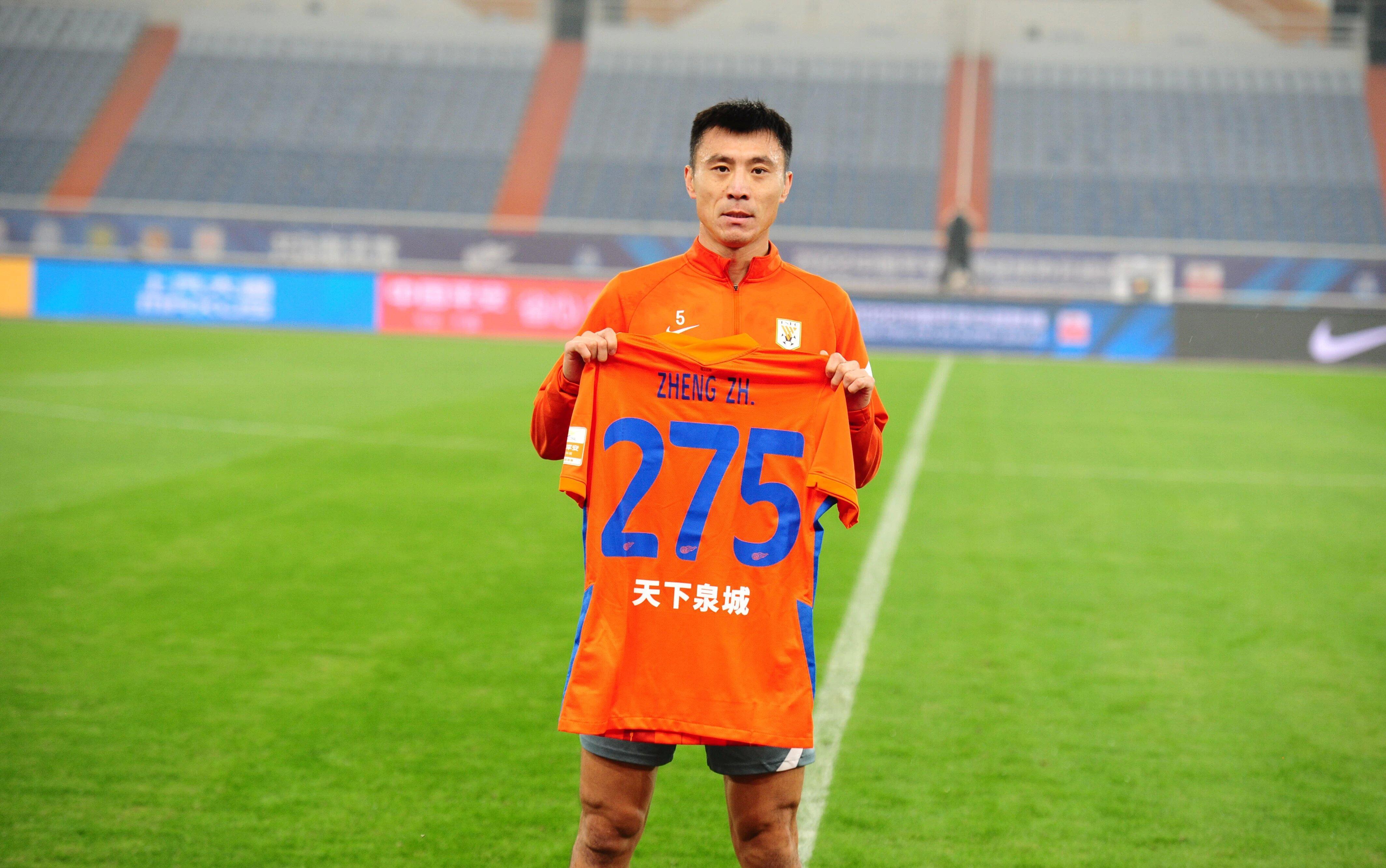 記者陳永報道 10月30日。山東泰山3比1擊敗上海海港,在積分榜上追平了武漢三鎮,時隔20輪,衛冕冠軍終於和本賽季最大的黑馬回到了同一起跑線。而這場比賽,對於山東泰山的隊長鄭錚而言,更是值得銘記的90分鐘,賽前,他從俱樂部總經理吳志東手中接過了印有275的紀念球衣——一個看似並不特殊的數字,卻代表着鄭錚成爲隊史中超聯賽出場紀錄保持者。