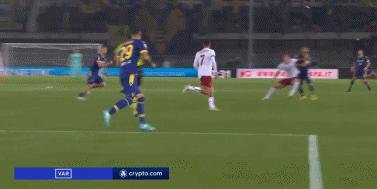 9分鐘後,進球功臣戴維多維茨因飛踹扎尼奧洛,被直紅罰下,維羅納少打一人。