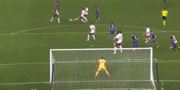 上半場補時階段,卡馬拉搶斷後分到左側,亞伯拉罕單刀球推射擊中左立柱,扎尼奧洛補射破門,羅馬扳平1-1。