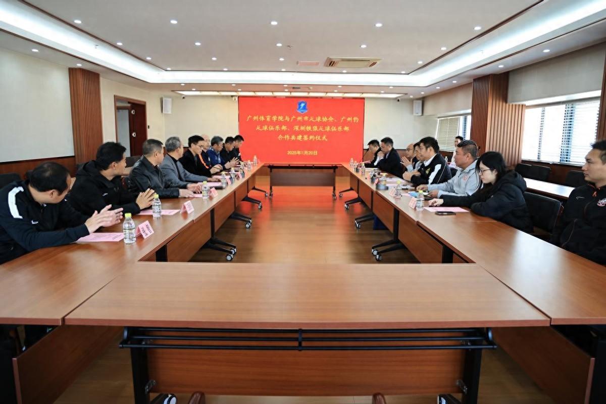 廣州體育學院副校長李裕和分別與廣州市足球協會、廣東廣州豹足球俱樂部、深圳南嶺鐵狼足球俱樂部代表簽署了合作共建框架協議。簽約儀式的順利進行標誌着合作邁上新起點,合作各方將攜手共進、優勢互補、共同推進中國足球高質量發展。