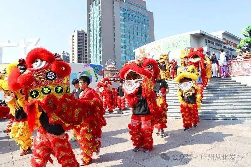 上午9點,伴隨一聲鳴笛,鞭炮聲響徹雲霄,208頭各具特色的從化傳統非遺龍獅踏着喜迎新春的氣氛,浩浩蕩蕩從河濱泳場出發,震撼人心的龍獅、靈巧可愛的貓頭獅、獨具特色的雞公獅,以及富有地域特色的水族舞,向羣衆展示了一場視覺和聽覺的雙重盛宴。