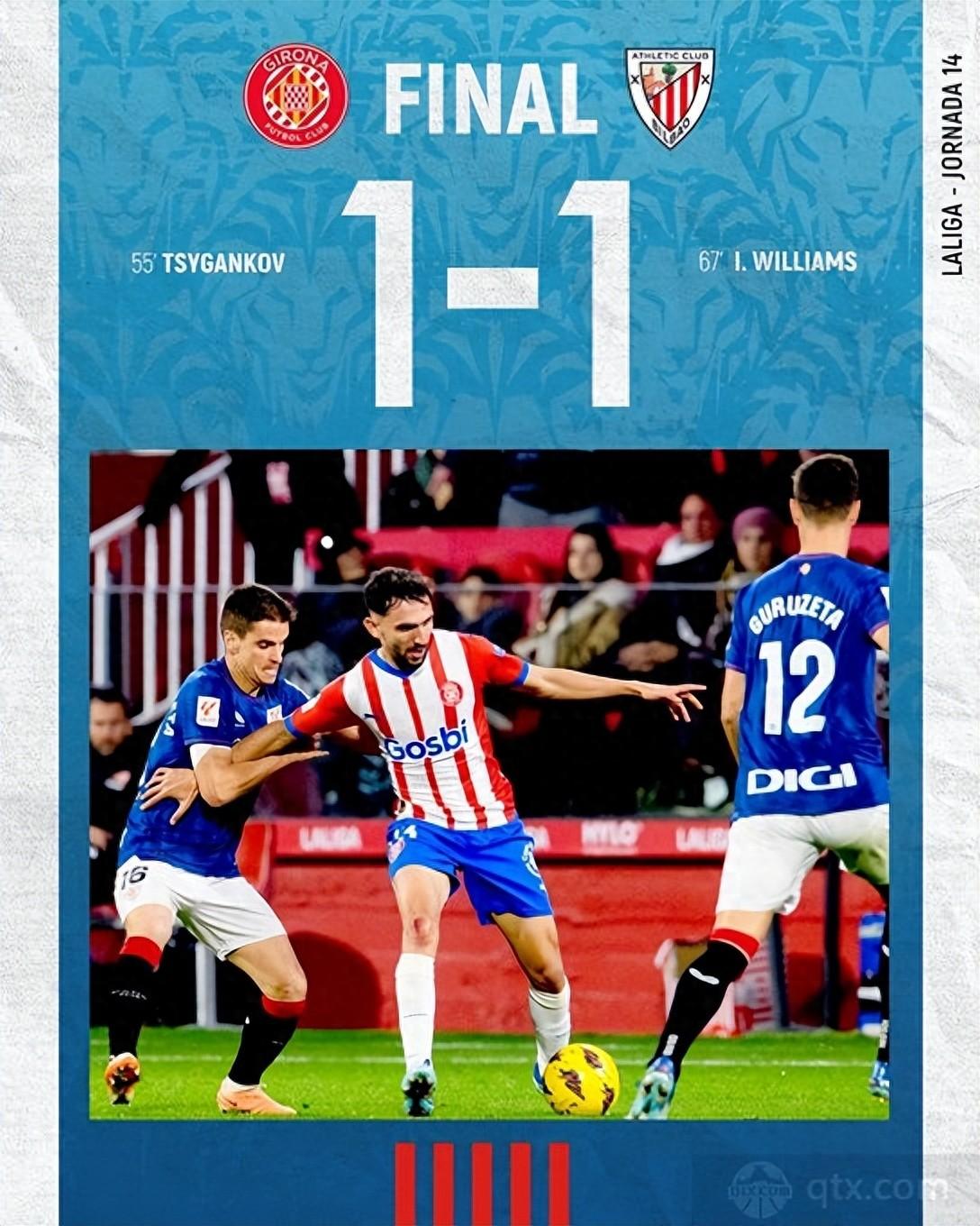 赫羅納本賽季的表現則有些起伏,22 輪聯賽過後,戰績爲 9 勝 4 平 9 負,積 31 分,排在第 7 位,已經被擠出歐戰區,與身前排名第 6 的巴列卡諾相差 1 分。對赫羅納來說,本場比賽是他們重回歐戰區的絕佳機會。若能在客場戰勝強大的畢爾巴鄂競技,不僅能提升球隊的士氣,還能在積分榜上實現反超,爲球隊後續的賽程注入強大的動力。