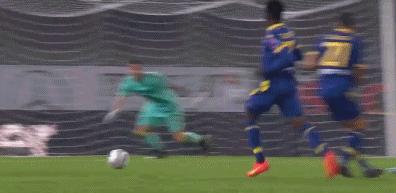 30歲沙拉維在面對維羅納打進的這一球,是接應了沃爾帕託的直傳球,然後冷靜挑過門將後,小角度打空門得手的。