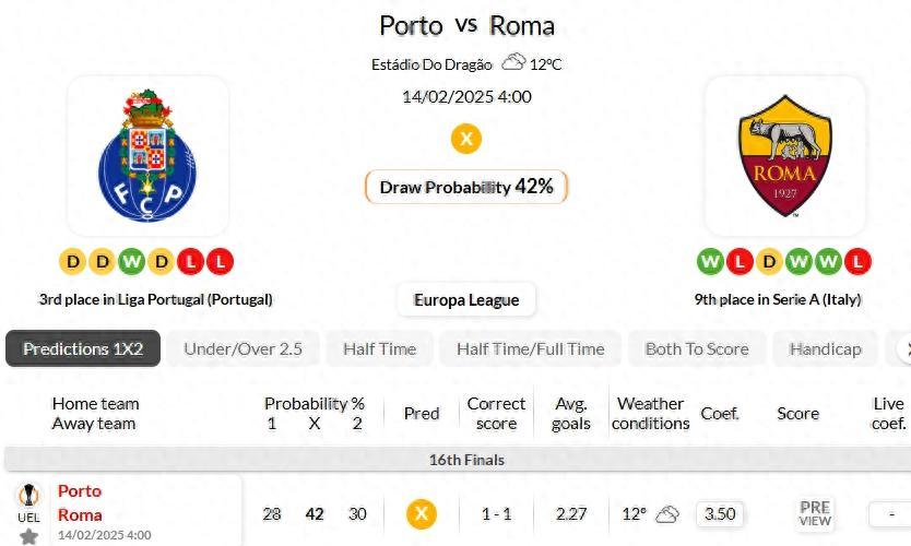 在波爾圖在歐聯杯的最後3場比賽中,進球數不到2.5個