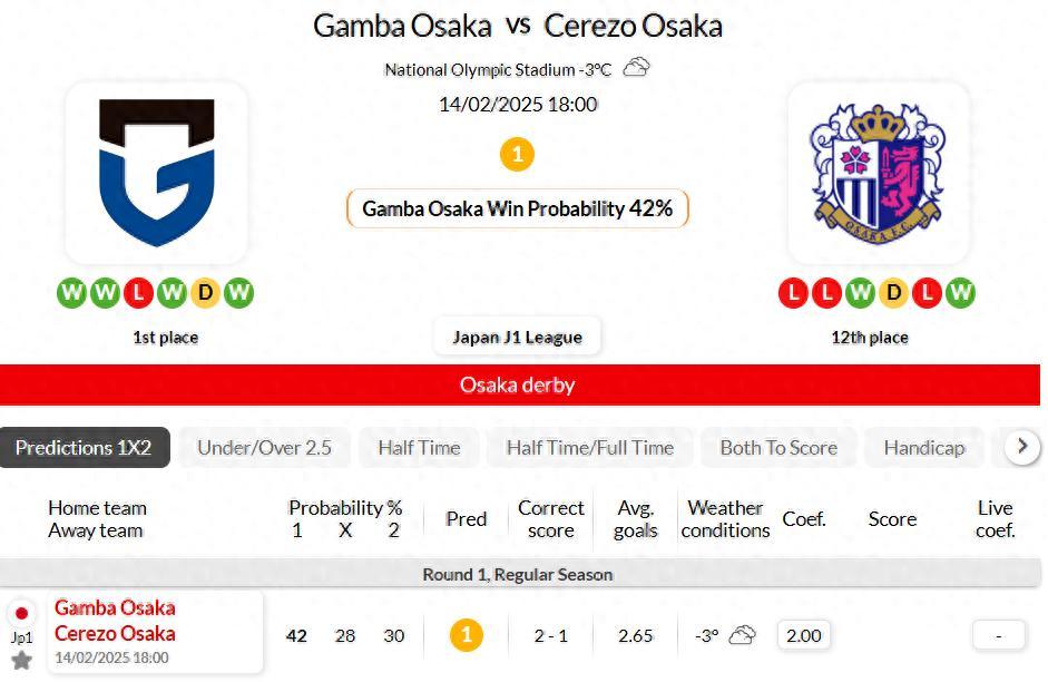 大阪鋼巴在過去 4 場聯賽中在 HT/FT 中獲勝