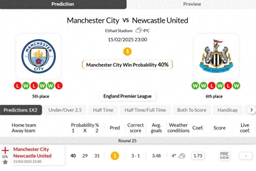 曼城VS紐卡斯爾