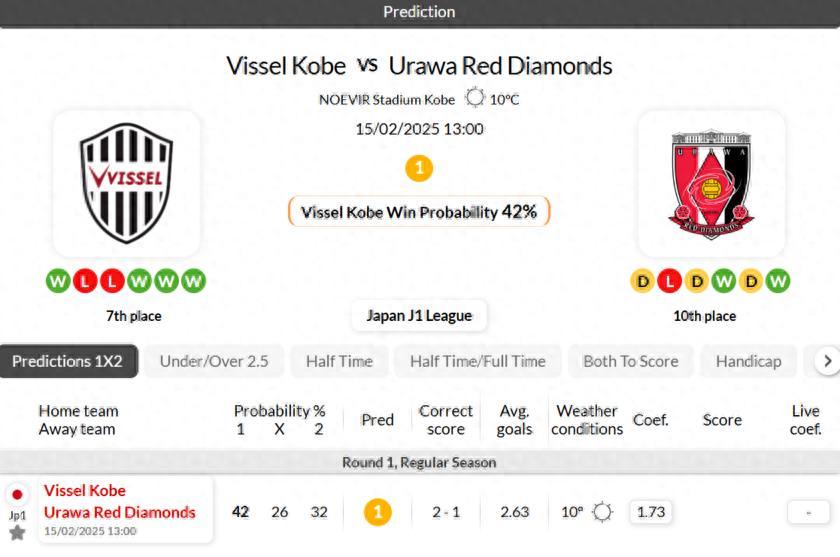 Urawa Red Diamonds have not been beaten in 5 of their 6 most recent matches in J1 League.